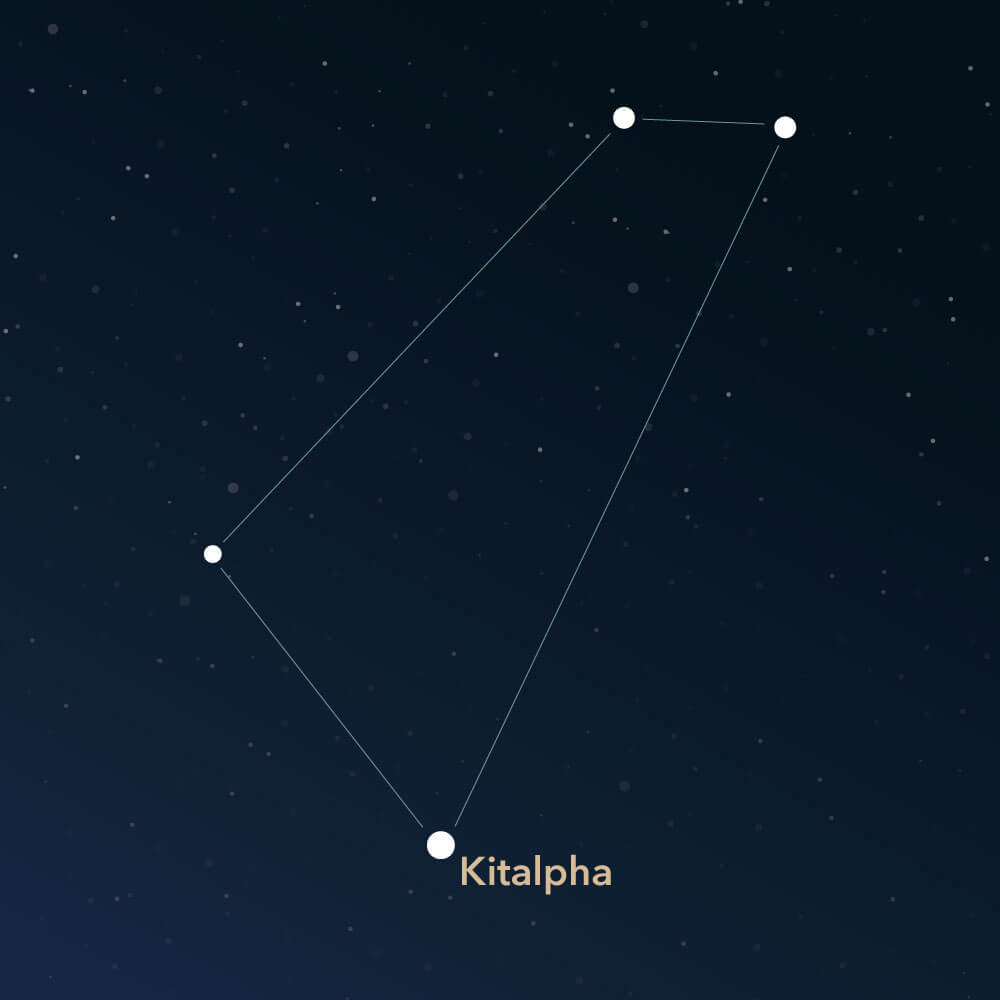 Due to its inconspicuous shape and faint stars, Equuleus is not easy to find. Almost all stars in the constellation are smaller than the fourth magnitude. The brightest star is named Kitalpha (Latin: α Equulei, Alpha Equulei), which can be translated as "part of the horse." It is a binary star system located approximately 186 light-years away. The star has an apparent magnitude of roughly 3.95, making it the only star in the constellation brighter than the fourth magnitude.