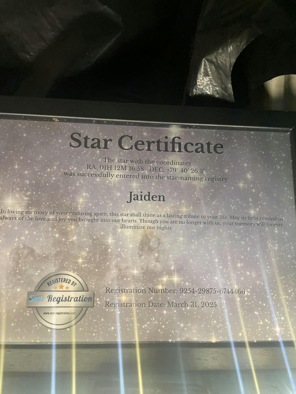Loves the frame and the black makes this certificate stand out a lot. Love it 🥰